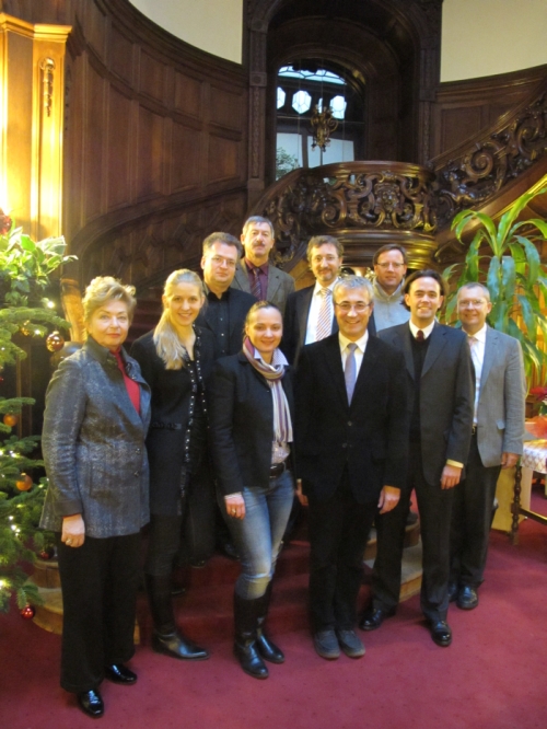 (Präsident Dr. Andreas Schnider und Generalsekretär Mag. Maximilian Richter mit einigen Mitgliedern der 52. Delegiertenkonferenz.)
